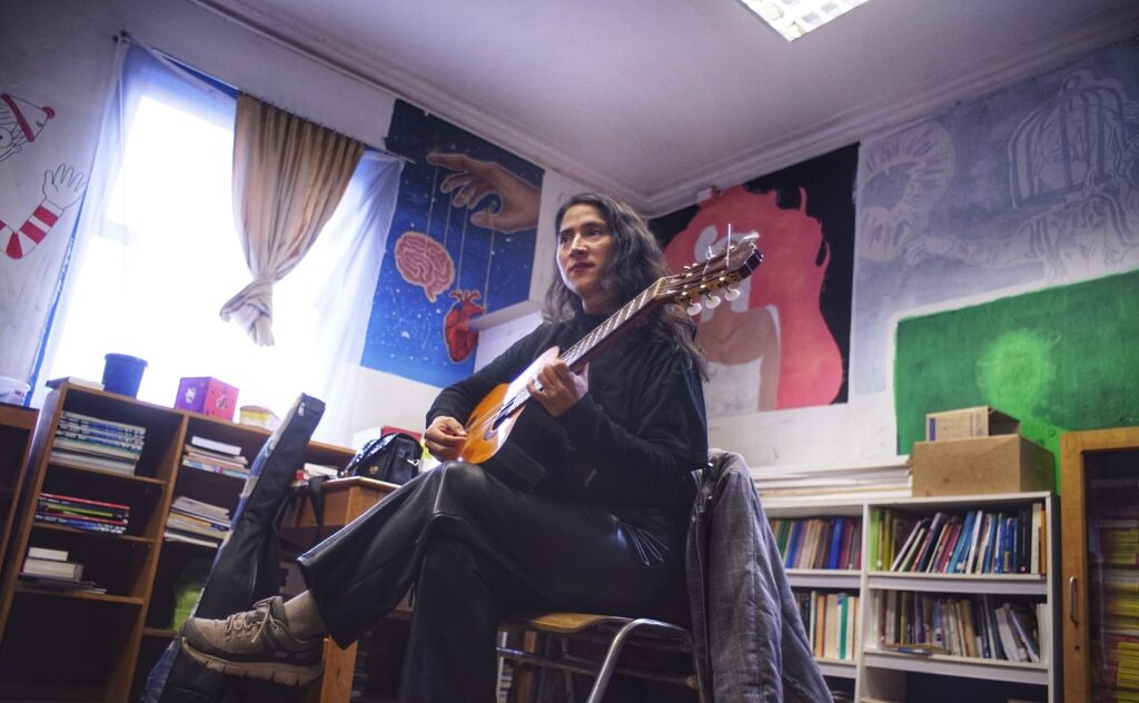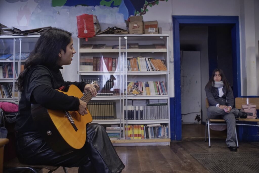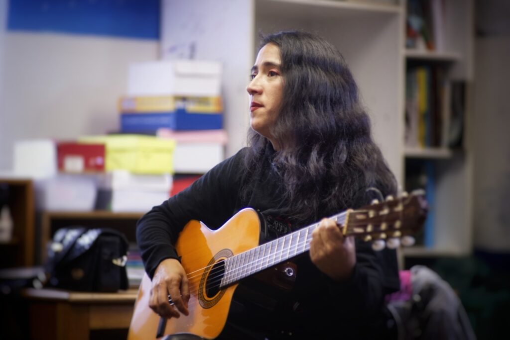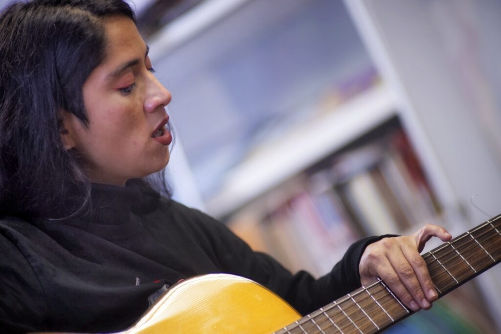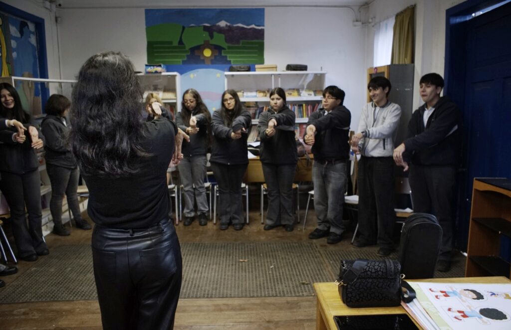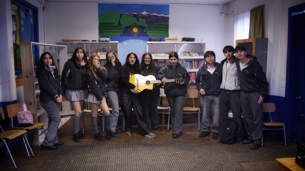 Destacó también la activa participación del estudiantado, quienes fueron invitados a corear, armonizar, percutir patrones rítmicos de raíz mapuche y acompañar con palmas diversas piezas del repertorio folclórico.
