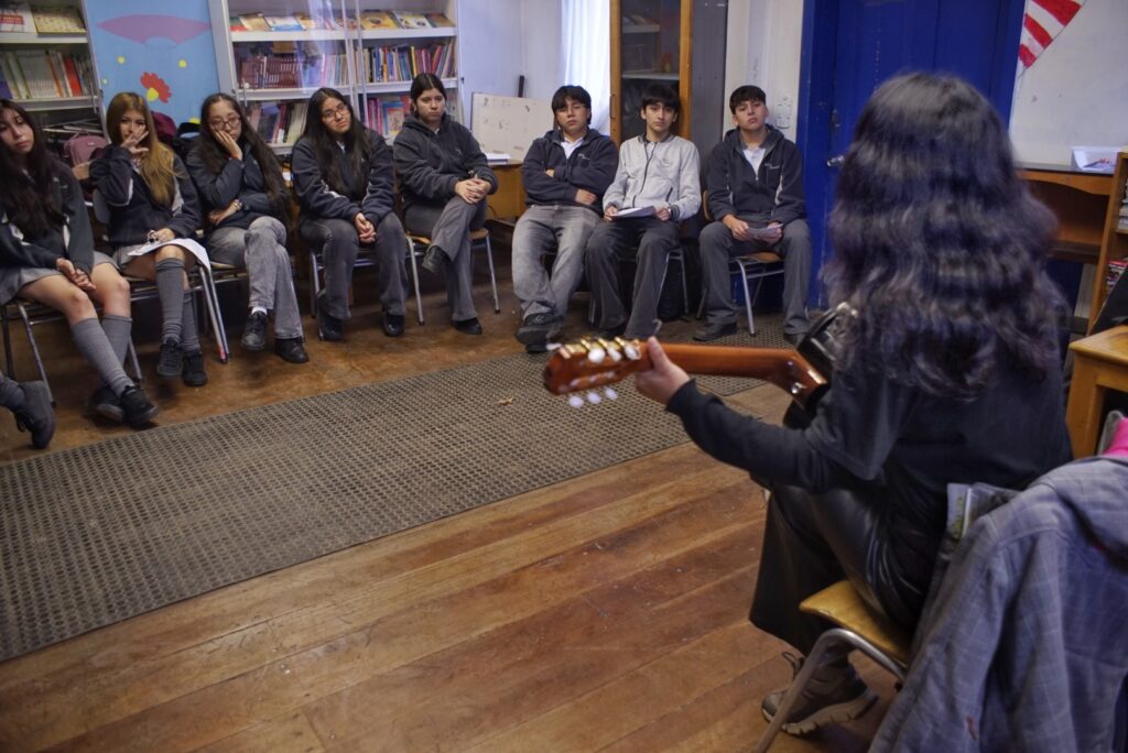La instancia se desarrolló de manera participativa, promoviendo el diálogo entre estudiantes y docente, quienes formularon preguntas relacionadas con los procesos de audición, comprensión e interpretación de obras de distintos autores. Asimismo, la Srta. Bello dio a conocer su proceso creativo y compositivo, entregando una visión cercana sobre la construcción de su repertorio original.